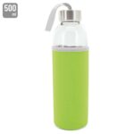 Garrafa de agua realizada em vidro. A sua funda de neopreno anti-deslizante e desmontável oferece protecçao e decoraçao ademais de um efeito de isolante para a garrafa. Podes levar-la donde queiras com a sua cómoda asa incorporada. Disponivel em uma grande variedade de cores, em original CINZENTO VIGORE. Capacidade de 500 ml. Cada garrafa apresentada numa caixa.