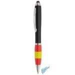 Bolígrafo antiestrés giratorio con detalle bandera españa, francia e Italia. Escritura azul