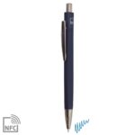 Bolígrafos con etiqueta NFC integrada y compatible con todos los teléfonos inteligentes NFC.Permite transmitir la información que queramos a smartphones y tablets de forma sencilla, simplemente acercándolo al dispositivo, por ejemplo, enlaces a redes sociales, páginas webs, publicidad, etc.Escritura azulIncluye funda de antelina (se sirve por separado)