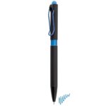 Bolígrafo realizado en textura soft effect, cuerpo de bolígrafo de goma negra, clip metálico y goma touch en color.Técnica de grabación de el bolígrafo Shiny en láser fibra con acabado brilloespejo a juego con el color del touchEscritura azulDisponible en una amplia variedad de colores