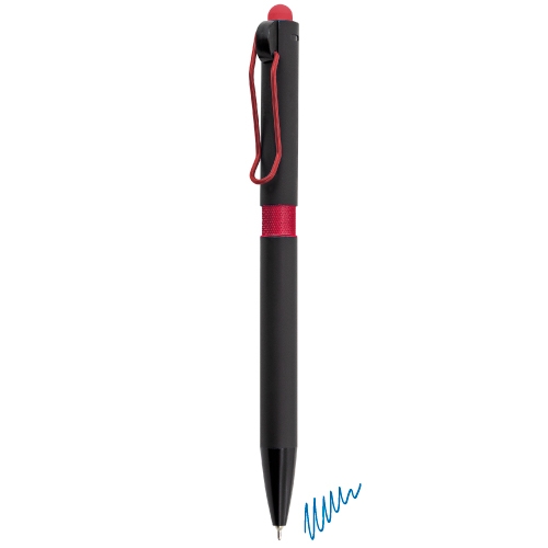 Bolígrafo realizado en textura soft effect, cuerpo de bolígrafo de goma negra, clip metálico y goma touch en color.Técnica de grabación de el bolígrafo Shiny en láser fibra con acabado brilloespejo a juego con el color del touchEscritura azulDisponible en una amplia variedad de colores