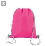 Prática bolsa-mochila com alças de corda em poliester em cores vivas no exterior. Interior forrado com material de isolamento térmico de alumínio. Perfeito para levar bebidas frias ou lanches em suas caminhadas. Disponível em tamanho padrão para adultos (G-078) e em tamanho especial para crianças (G-079).