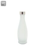 Botella de cristal con capacidad de 500mlElegante diseño con tapa de acero inoxidableDisponible en varios colores; blanco, rosa, turquesa y royalIncluye caja de presentación de cartón grueso blanco.No apto para lavavajillas