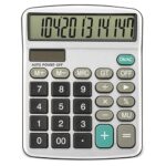 Calculadora de 12 dígitos profesionalExtra grande de fácil lectura en pantalla grande y gran número.Energía solar o de la batería, incluye pilas. Presentada en caja individual plateada.
