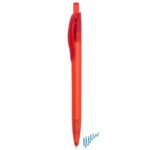 Caneta transparente disponivel numa amplia variedade de cores, escrita azulSe sirve en múltiplos de 50 unidades