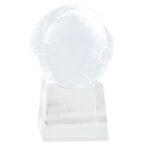 9.6 cms de diámetro de la bolaCristal tallado en dos piezas, base y bola del mundo.Incluye lujoso estuche de regalo con forro interior de raso y cierre imantado