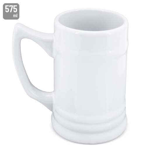 Elegante jarro de cerâmica branca, perfeito para a técnica de marcação por sublimação. Vendido em múltiplos de 20 unidades, Capacidade de 575 ml