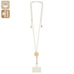 Lanyard de algodão com centro em bambu. Inclui um adaptador universal para capa, permitindo manter o telemóvel sempre à mão.