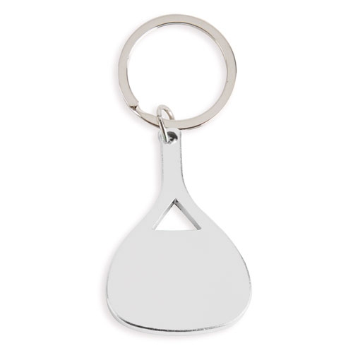 Llavero de aluminio con forma de raqueta de pádel. Disponible en llamativos colores.
