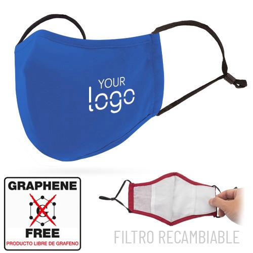 Segurança total e máximo conforto graças ao sistema de fecho ajustável e ao seu filtro recambiável. Realizadas em poliéster e algodão para marcar fácilmente Inclui filtro 3 capas Material exterior poliéster e algodão Material interior 100% algodão Apresentação em bolsa individual Venda em múltiplos de 25 uds.Caixa master exterior de 500 uds. (14 kg. aprox.)