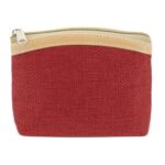 Monedero realizado en un tejido similar al yute, y un aplique de polipiel en la parte superior.Disponible en 4 colores Rojo, marino, Negro y Crudo.