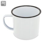 Caneca metálica de design retro com irregularidades que lembram as canecas dos nossos avós.