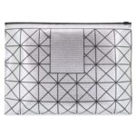 Elegante e práctico necesser de viagem realizado em non woven laminado com acabadometalizado e um desenho geométrico, com uma reserva de espaço na partesuperior das suas caras para a gravaçao da sua publicidade.Apresenta um cómodo e práctico fecho zipper.Disponivel em dois eleganes cores metalizados: Prata e Ouro.