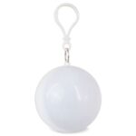 Original porta-chaves em forma de bola que guarda um poncho dobrável para a chuva.