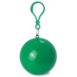 Original llavero en forma de bola que guarda un poncho plegable para la lluvia color azul.Diámetro bola 65 MM, medida del poncho 120×90 cm