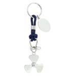 Porta-chaves com hélice de marinheiro ligada por uma corda azul. Inclui uma placa para marcação a laser.Cada peça em bolsa individual com fecho automático (é fornecida aberta, para facilitar a sua manipulação).