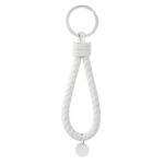 Porta-chaves elegante confeccionado em couro sintético trançado, com detalhes em placa de metal arredondada.
