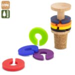 A rolha mantém a garrafa fechada, enquanto os marcadores, sempre à mão, dão um toque divertido e funcional.