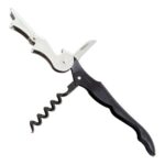 Nueva generación de sacacorchos con doble palanca, para una suave y fácil extracción del tapón.Incluye un práctico abrebotellas con mango ergonómico en color negro mate.Cada pieza en bolsa individual y caja blanca de presentación.