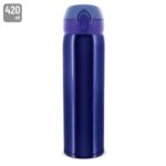 A garrafa térmica LUXOR em aço inoxidável apresenta uma estética moderna graças ao seu acabamento metálico e é facilmente acessível graças ao seu design com fecho de segurança, que oferece uma abertura rápida e fácil graças ao botão central que abre a tampa automaticamente.Ao abrir a nossa garrafa térmica, encontrará um design ergonómico para beber confortavelmente.A estrutura de borracha no interior da tampa foi concebida para evitar fugas.Capacidade: 420 ml.Para manter o seu produto em ótimas condições de higiene e prolongar a sua vida útil, recomenda-se seguir as instruções de limpeza antes da primeira utilização.Além da limpeza adequada após cada utilização, recomendamos manter o interior do produto completamente seco e bem ventilado antes do armazenamento.Não utilize para bebidas gaseificadas ou produtos lácteos.Disponível nas cores: Azul, Vermelho, Verde, Branco e acabamento em sublimação.