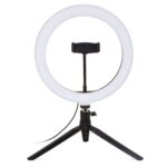Práctico trípode con aro de luz incorporado para iluminar tu rostro de manera profesional.Con intensidad regulable en sus 3 modos de luz (cálida, fría, y mixta). Dispone de una rótula regulable para adaptar el ángulo ideal en tus tomas. Además, el adaptador de smartphone es adapatable en ángulo y en orientación gracias a su rótula incorporada. Cable adaptador de corriente USB incorporado, con mando controlador para regular sus funciones.Incluye caja de presentación.