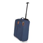 Carrinho moderno da empresa Pierre Delone, com tecido marmorizado e apliques em couro camelo. Possui duas rodas e vários batentes de proteção nas bases de apoio. Grande capacidade e leveza.