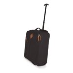 Mala de viagem moderna de Pierre Delone, com tecido manchado e aplicações em pele sintética na cor camel. Possui duas rodas e vários batentes de proteção nas suas bases de apoio.